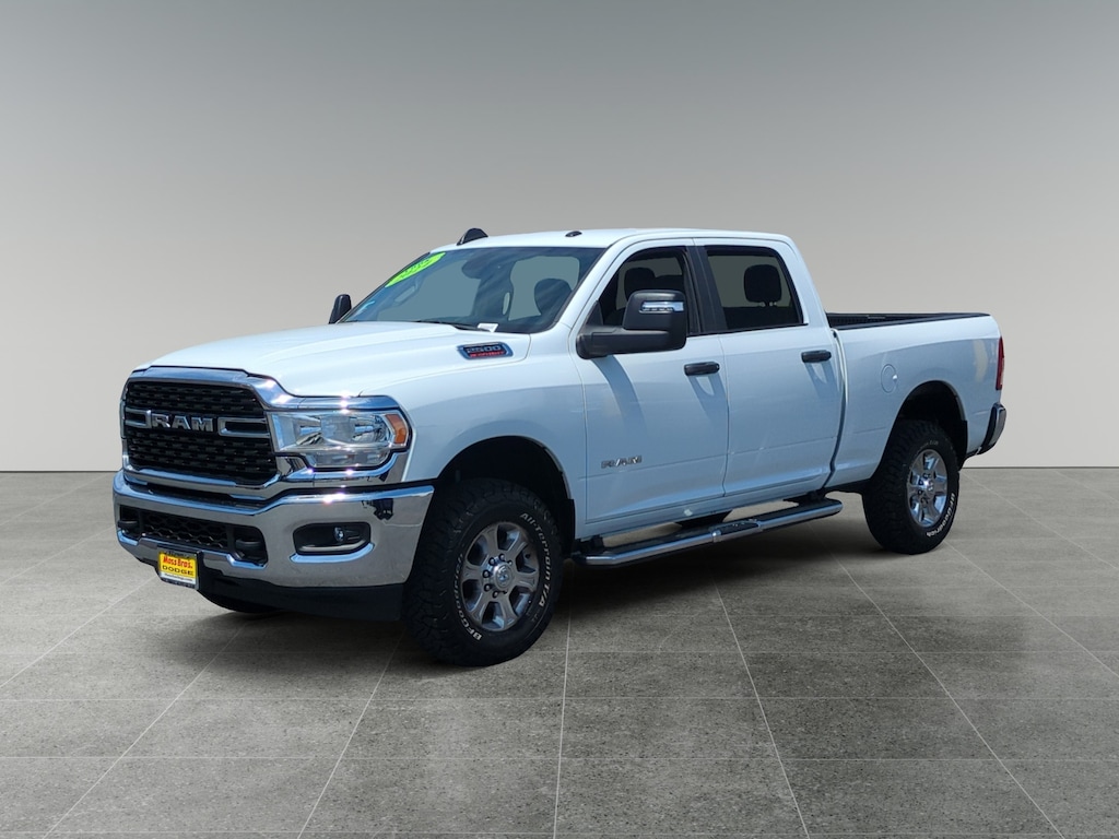 DIESEL GRAY/BLACK, PREMIUM CLOTH 40/20/40 BENCH SEAT Storage Tray, Rear 60/40 Folding Seat, Front Armrest w/Cupholders, Remote USB Port - Charge Only, Front Center Seat Cushion Storage, Manual Adjust 4-Way Front Passenger Seat, Power Adjust 8-Way Driver Seat, Front Seat Back Map Pockets, Power 2-Way Driver Lumbar Adjust, CHROME FLAT CAB-LENGTH SIDE STEPS, LEVEL 1 EQUIPMENT GROUP Google Android Auto®, For Details, Visit DriveUconnect.com, For More Info, Call 800-643-2112, Leather Wrapped Steering Wheel, Rear Dome w/On/Off Switch Lamp, Front Fog Lamps, Glove Box Lamp, Auto Power-Folding Mirrors, Footwell Courtesy Lamp, 4G LTE Wi-Fi Hot Spot, Mirror Running Lights, Radio: Uconnect 5 W w/8.4 Display, 8.4 Touchscreen Display, Foam Bottle Insert (Door Trim Panel), Wheels: 18 x 8.0 Polished Aluminum, Apple CarPlay®, Big Horn IP Badge, Power Adjustable Convex Aux Mirrors, Forward & Reverse Utility Lights, Locking Lower Glove Box, Selectable Tire Fill Alert, SiriusXM Satellite Radio, Power Heated Fold Telescope Mirrors, Exterior Mirrors w/Supplemental Signals, Steering Wheel Mounted Audio Controls, Exterior Mirrors Courtesy Lamps, Dual Glove, TRANSMISSION: 8-SPEED AUTO (8HP75-LCV) (STD), ENGINE: 6.4L V8 HEAVY DUTY HEMI MDS (STD).